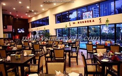 وهنا مطعم الفندق وصالة الطعام في فندق فلامينقو في بينانج